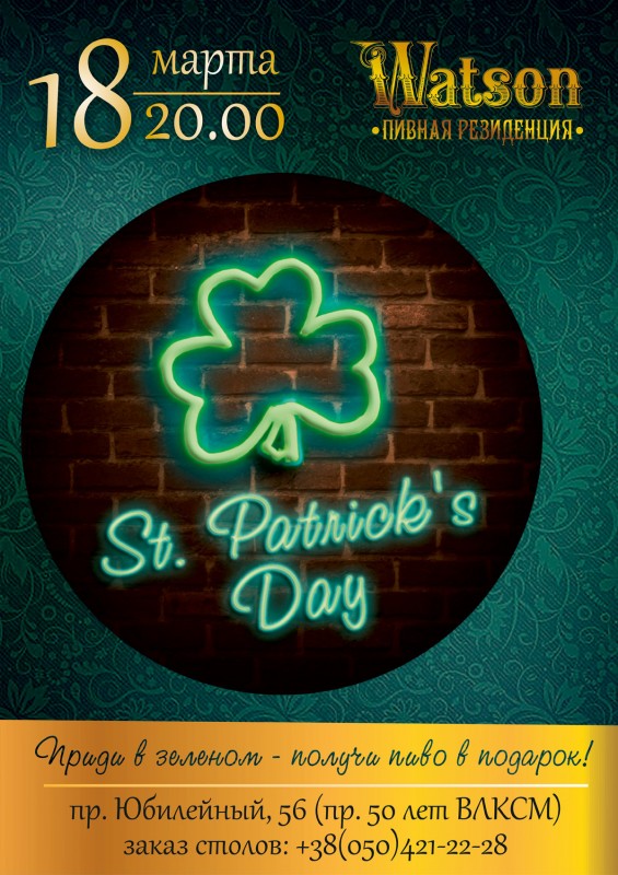 Тогда мы ждем Вас в пивной резиденции WATSON на вечеринке, посвященной дню святого Патрика!