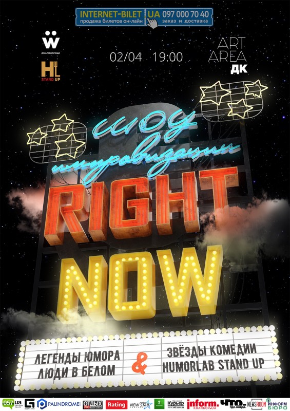 Билеты можно приобрести: https://kharkov.internet-bilet.ua/Improvizacionnoe-right-now-show
