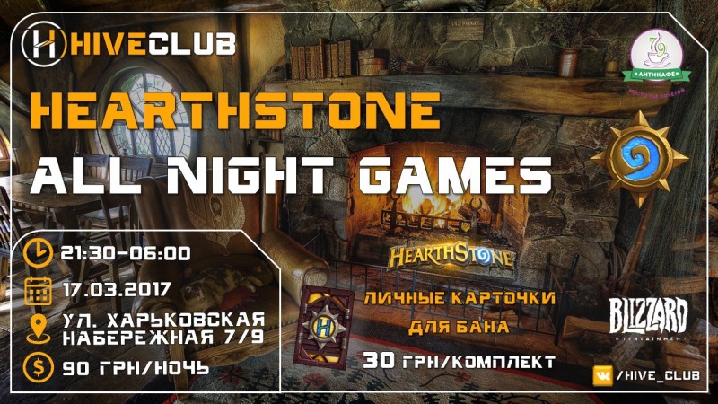 На ночь вам потребуется иметь своё игровое устройство с обновленной игрой Hearthstone, минимум 3 колоды для игры и карточки для бана (если нет, сможете приобрести на месте 30 грн/комплект).
