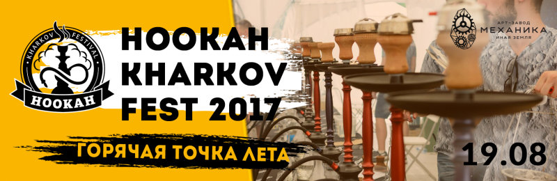 Среди новичков этого года стоит отметить уникальное событие – первый кальянный фестиваль Kharkiv Hookah Fest 2017, который подмял под себя самую крутую локацию города Харькова – Арт-Завод МЕХАНИКА, который всего лишь за годсвоего существования принял 5 фестивалей, массу огромных концертов, выставок и проект Городской пикник.