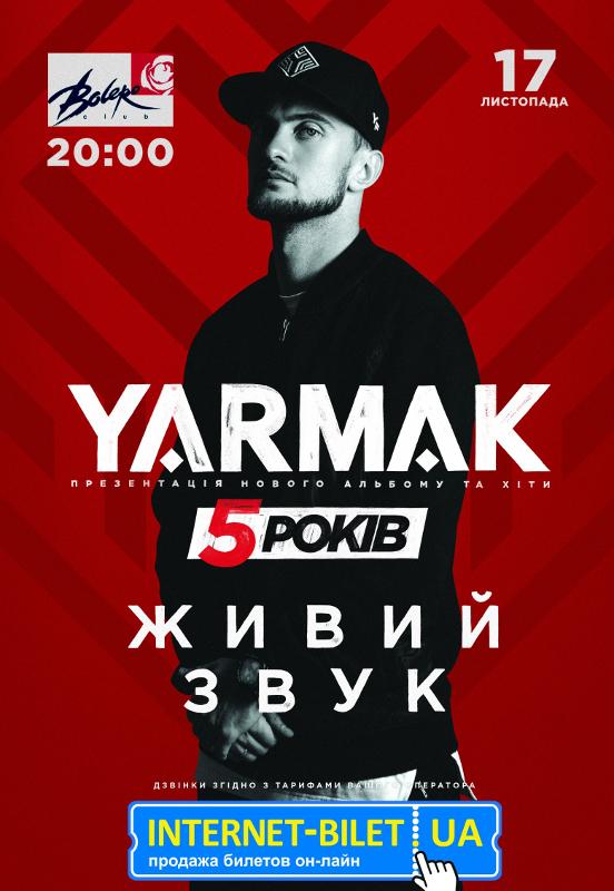 В любом городе Yarmak собирает толпы своих поклонников, забивая залы практически до пределов, его концерты в Киеве всегда отличались особой энергетикой и атмосферой. Yarmak - это обязательно буря эмоций и невероятный драйв, когда весь зал «качает» в унисон.