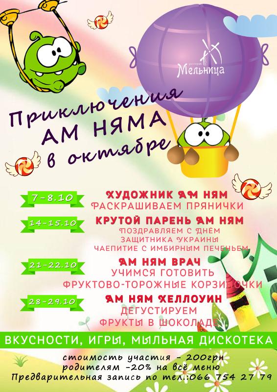 Дорогие гости, представляем Вам новую в Харькове анимационную программу "Ам-Ням"! Составьте компанию зелёному сладкоежке и отправьтесь в удивительное путешествие сквозь время и пространство, где Вашей целью будут новые вкусняшки и веселье!