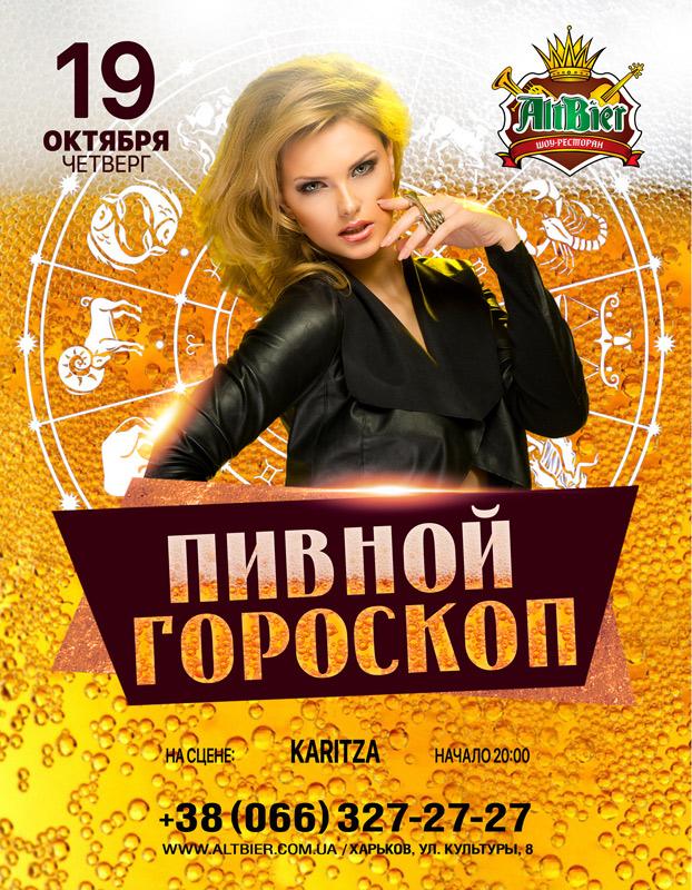 Наш главный астролог – Либор Чех (пивовар шоу–ресторана ALTBIER) подготовил для каждого из Вас личный пивной гороскоп! Уже в этот четверг Вы можете узнать прогноз на выходные. Мы поможем Вам подобрать идеальное пиво для отдыха, исходя из наших астрологических подсчетов!