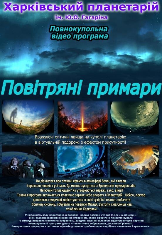 Вы узнаете об оптических эффектах земной атмосферы, которые пугали и впечатляли людей во все времена. Где можно встретиться с Брокенским призраком или Летучим Голландцем? Как образуются миражи, гало, венцы? Поразительные оптические явления на куполе планетария с эффектом присутствия!