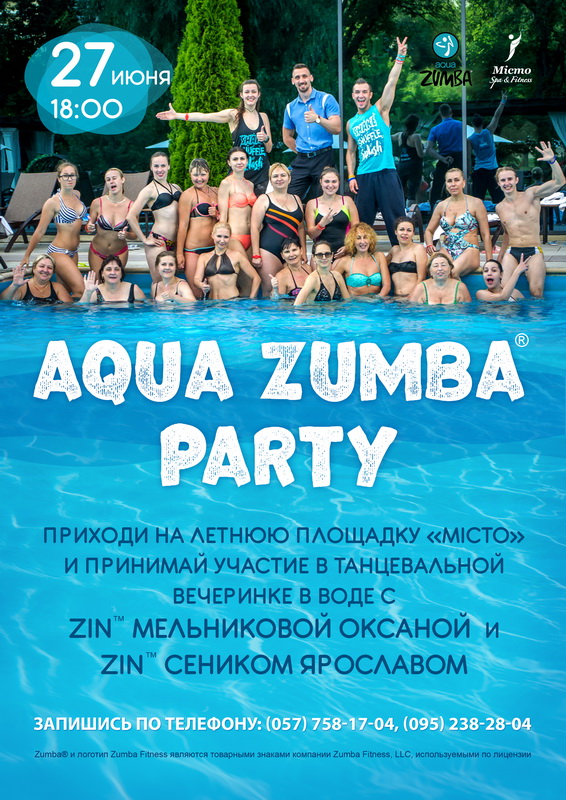 Абсолютно для всех желающих на Летней площадке "Місто" пройдет сумасшедшее, драйвовое мероприятие - Aqua Zumba Party вместе с Ярославом Сеником и Оксаной Мельниковой.