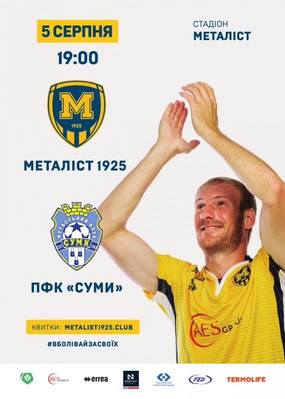 Матч 3-го тура Чемпионата первой лиги, в котором "желто-синие" будут принимать ПФК "Сумы". Поединок состоится на стадионе "Металлист" (ул. Плехановская, 65) 5-го августа.