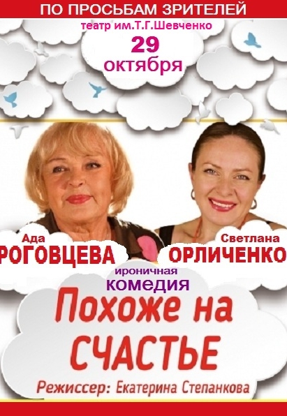 В главной роли - блистательная Ада Роговцева. В этом году спектакль удостоен главной театральной премии страны - «Киевской пекторали»-актрисой года признана Ада Роговцева за образ Клод в спектакле «Похоже на счастье»,а так же «Лучший камерный спектакль» - «Похоже на счастье».