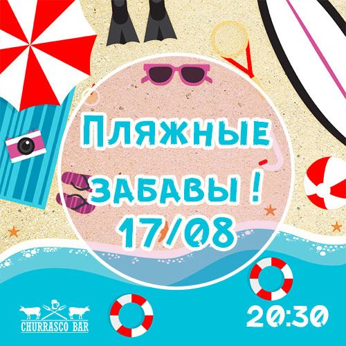 Пляжные забавы – вечеринка для тех, кто никак не может вырваться на пляж и окунуться чтобы охладиться. Ныряем в отдых с нами. Пляжные эстафеты, «охлаждающие» конкурсы, аквааэробика от персонала. Начало в 20.30 (Пушкинская, 22) У нас можно заплывать за буйки)