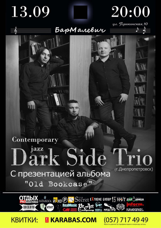 Музика DarkSideTrio (Україна, Дніпро) - це квінтесенція людських переживань. Поєднання еластичних ритмів ударних, густого як час Родеса, і наповнюючого простір саксофона. В їх творчості знаходить своє відображення дійсність, з усією характерністю сучасного суспільства експресією, рішучістю і зосередженнністю.