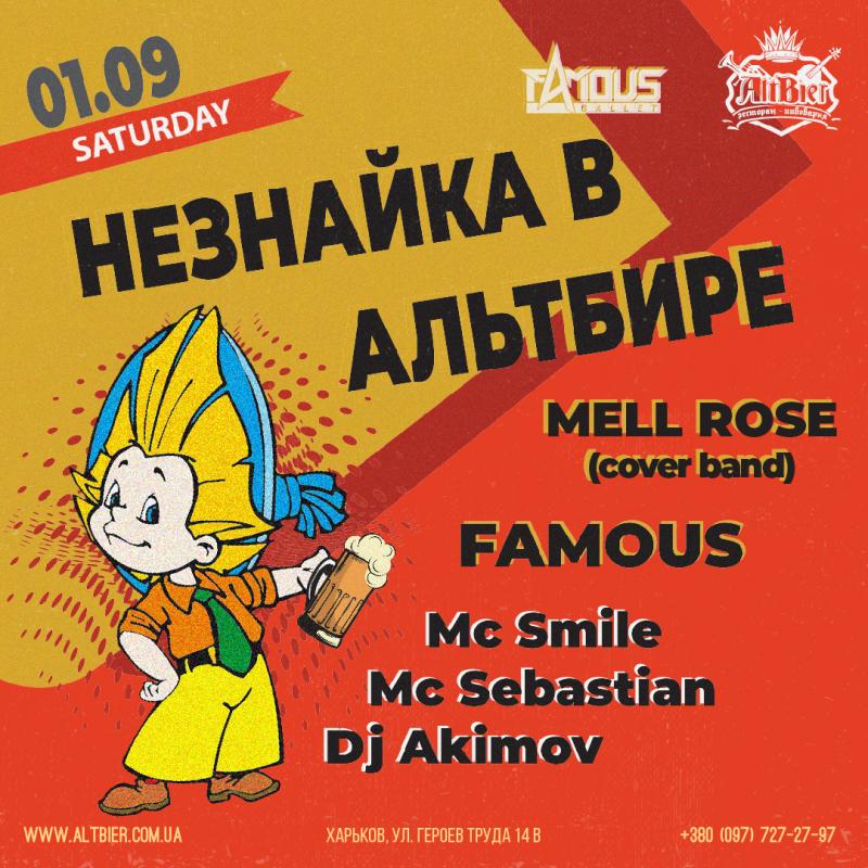 Первый день осени и день знаний в Альтбире пройдет под флагом вечеринки - Незнайка в Альтбире. Мы представим свою версию этого персонажа и его любовь к пиву. Да, незнайка повзрослел и набрался опыта в том, чего раньше не знал и теперь он веселый символ 1 сентября. Ведущий вечеринки Антон Smile, шоу балет Famous и cover band Mell Rose. Ночная дискотека при поддержке нашего резидента Dj Akimov и барменов особого назначения. Давайте в субботу обменяемся знаниями)