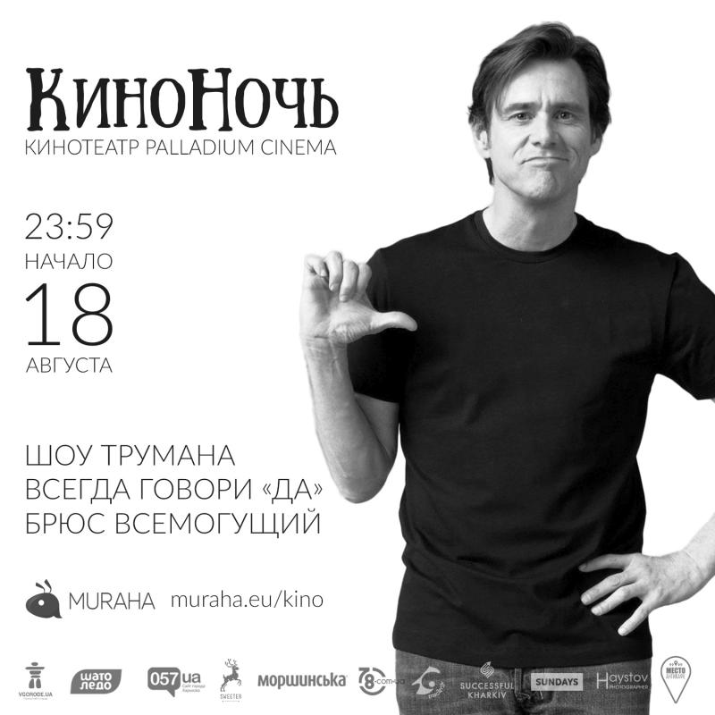 Но в этот раз мы хотим показать всеми любимые фильмы Джимма Керри. Вас ждет незабываемая атмосфера киноночей, отличные фильмы, подарки от партнеров и организаторов!