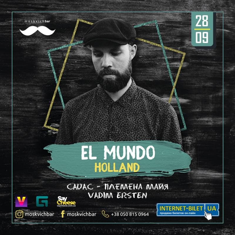 EL MUNDO выступит в стенах Moskvich Bar, чьи треки всегда очень веселые и максимально танцевальные. К слову - это его второй приезд в Харьков. Мы помним незабываемую Новогоднюю Ночь, когда голландец подарил нам прекрасные танцы!