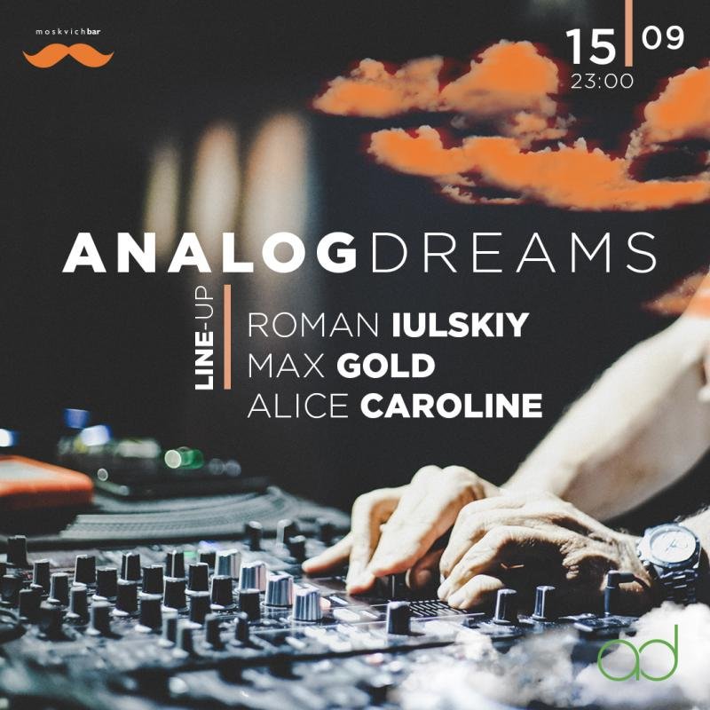 В субботу первая виниловая вечеринка в этом сезоне из серии Analog Dreams. Позади нас уже десятки мероприятий от проекта в стенах Moskvich Bar. По отдельности и вместе резиденты Analog Dreams вечеринок вдохновляются музыкально и визуально, осознанно и технически, что каждый раз прослеживается в сэтах ребят. И главное, конечно, - это vinyl only. Свои новые пластинки для вас отыграют DJs Roman Iulskiy, Max Gold, Alice Caroline. Всю ночь атмосфера теплового аналогового звучания, классика и актуальные ритмы танцевальной музыки на вечеринке Analog Dreams.