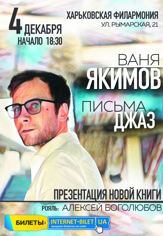 Оставаться дома вечером 4 декабря, когда в органном зале Харьковской филармонии выступает поэт Ваня Якимов – непозволительная ошибка! Ведь такое яркое, позитивное поэтическое событие не повторяется каждый день!