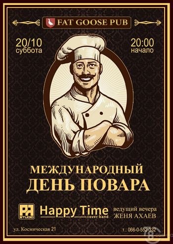 Празднуем Международный день повара! В 2018 году он проходит 15-й раз. Праздник всех кулинаров и поваров. Cамые вкусные блюда и оригинальная подача, узнаете все секреты лучшей кухни! На сцене группа Happy Time!