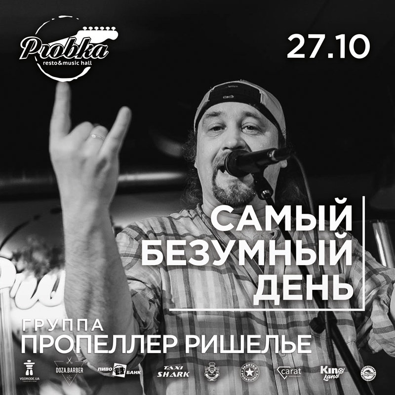 Безумному дню - безумные танцы (мы гарантируем, что так и будет)! На сцене полюбившаяся всем группа - ПРОПЕЛЛЕР РИШЕЛЬЕ. Известные всем хиты в неповторимом стиле ПРОПЕЛЛЕР'ов с их фирменной подачей. Затанцуют все, даже те, кто этого никогда не делал. Устоять и усидеть на одном месте - просто невозможно.