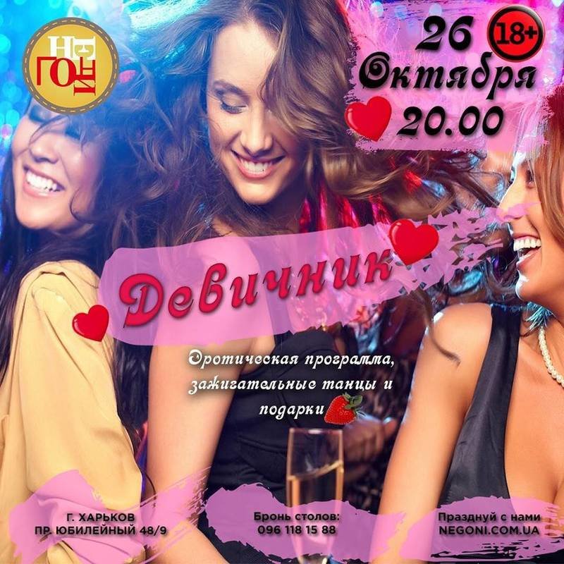 Дорогие #дамы Кто устал от скучных будней?) В эту пятницу объявляем #Девичник #Пьём , #танцуем , #поем всю #ночь и#наслаждаемся очень горячим выступлением от особого гостя Веселые #конкурсы , #подарки , вкусная #еда и дымный #Кальян Бери подруг и приходи! Вход свободный! Забронировать стол можно по номеру +380 (96) 118 15 88