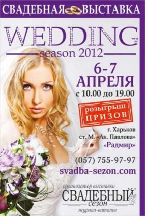 У вас скоро свадьба? Поздравляем вас! Вы боитесь предсвадебной суматохи? Мы поможем вам! Приглашаем молодых и их родителей, друзей и гостей посетить свадебную выставку-продажу, организованную журналом «Свадебный сезон». Здесь, всего за два дня, вы сможете решить все вопросы, касающиеся предстоящего торжества, и оставшееся время до свадьбы проведёте куда более приятно, нежели в поисках хорошего флориста, сногсшибательного платья и т. д.