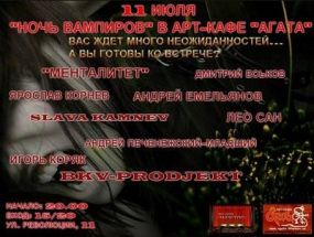 Тема вампиров популярна уже много лет. И сегодня вас ждет соответствующая атмосфера, музыка и много неожиданностей. А также конкурс на лучший вампирский образ.