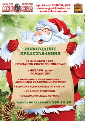 Игровая программа, праздничные хороводы, конкурсы с переодеваниями в любимых сказочных персонажей, угощение новогодним тортом, новогодняя дискотека со снегом и весёлое караоке.