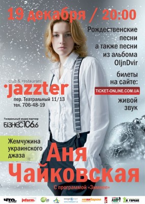 Всё ближе и ближе конец... года 2012 и начало нового, а с ним и светлого праздника Рождества. Как любят и празднуют эти праздники во всем мире известно всем. А сколько песен написано и спето по этому поводу! Классика, джаз, фольклор в исполнении жемчужины украинского джаза Ани Чайковской, наряду с полюбившимися песнями её уходящего года альбома OljnDvir - верный способ войти в предпраздничное состояние.