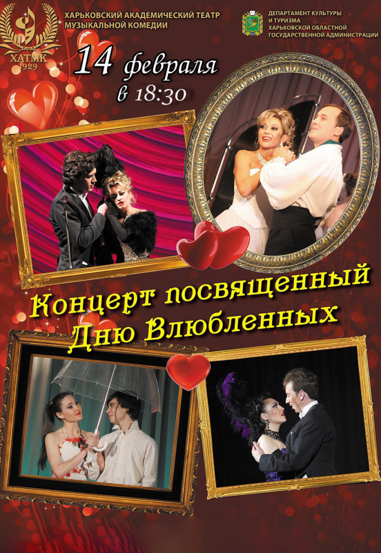 Дорогие друзья, 14 февраля 2019 года в 18.30 у вас есть великолепная возможность удивить своего любимого человека и пригласить его на праздничный концерт ко дню влюбленных, который состоится в Харьковском академическом театре музыкальной комедии.