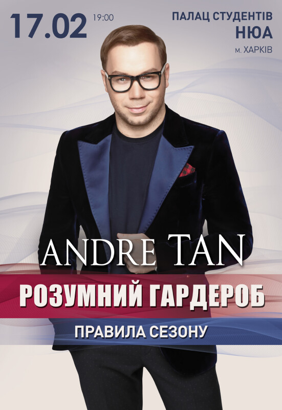 Основатель одноимённого бренда Andre Tan, одежда которого приносит удачу более 16 лет одевает женщин всего мира,научит именно вас как сочетать цвета и создать свой гардероб при этом, не скупая все на своем пути. Тренды, цвета, гардероб для любого возраста – все это возможно только (город, дата, время)