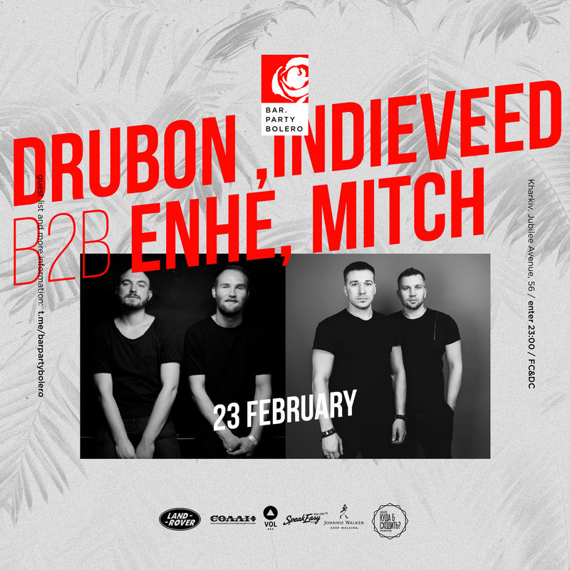Такого в #barpartybolero ещё не было! Black & White party 23 февраля. Пять крутых диджеев соберутся за пультом у нас и будут делать так, что каждый будет в танцах. DRUBON project, INDIEVEED b2b ENHE, MITCH!