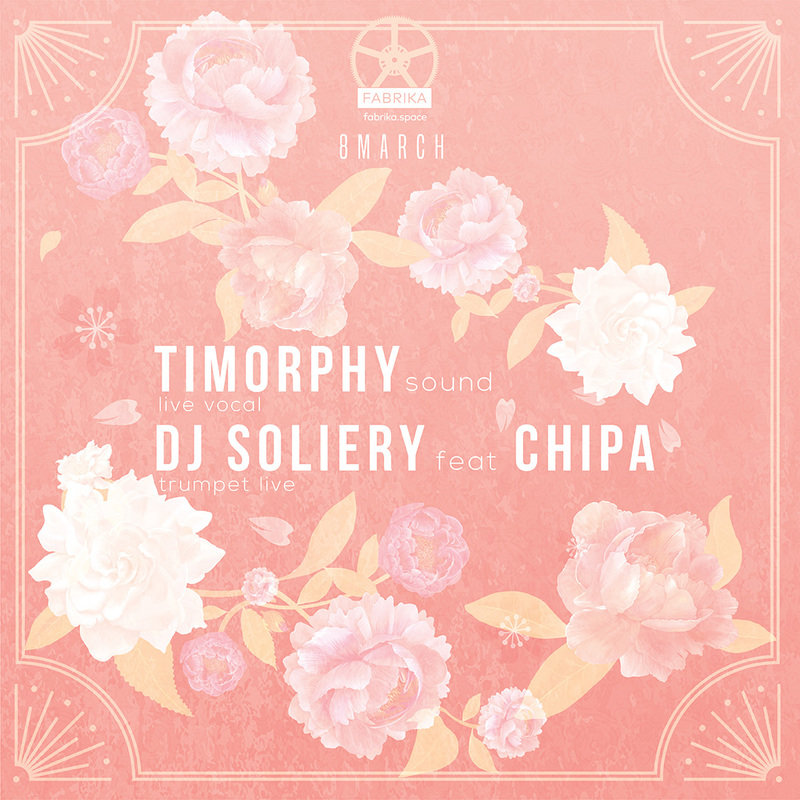 По случаю главного праздника марта в Fabrika.Space пройдет романтичный вечер под музыку от Dj Soliery feat Chipa. После музыкальный марафон перейдёт к Timorphy - живой вокал в стиле лаунж!