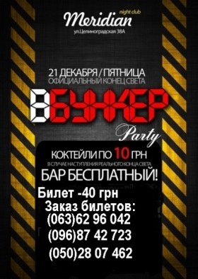 Наш клуб превратится в комфортабельный бункер с кальянами и бесплатным баром в случае наступления настоящего конца света!