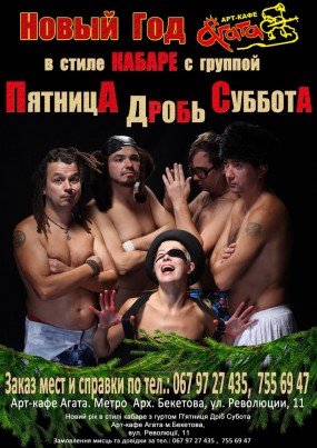 Оставьте все свои проблемы и проведите Новый Год у нас, вместе с группой «Пятница Дробь Суббота» - крестными отцами кабаре абсурда, основателями жанра приду-рок-оперы!