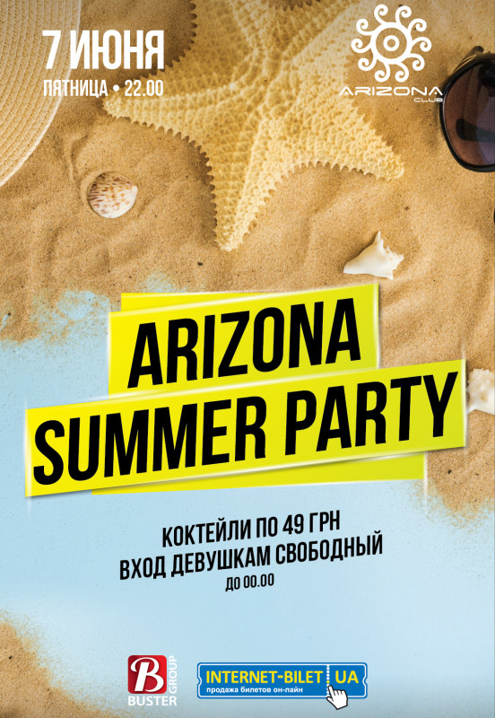 7 июня, пятница, Arizona beach club представляет Вам серию летних вечеринок “Arizona Summer Party”!