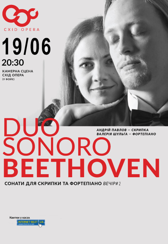 Встечаем полюбившихся нам Duo sonoro и сонаты Бетховена для скрипки и фортепиано. Этот концерт – продолжение проекта BEETHOVEN, в рамках которого в период с мая по сентябрь на Камерной Сцене Cхид ОПЕРА пройдет 6 вечеров, посвященных струнным сонатам композитора.