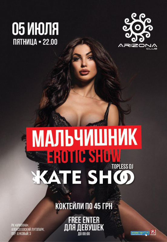Главным подарком этой горячей ночи будет соблазнительная и невероятная, одна из лучших в Украине Topless DJ - Kate Shoo, именно она зажжет эту ночь вместе с тобой и подарит сексуальный взрыв эмоций!