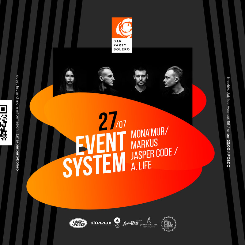 Не успели отгреметь одни выходные, как мы уже готовы к следующим! А вы? 27 июля в #barpartybolero System Event, а значит будут играть Markus, Mona’Mur, A. Life, Jasper Code.