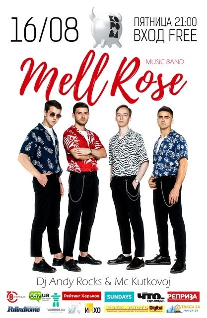 На сцене нашего клуба - суперстильный band «MELL ROSE»! Отличный вокал и харизма Александра Мороза совершенно точно придутся по вкусу всем прекрасным гостьям нашего клуба! Вас ждут любимые песни в живом исполнении, драйв и отличное настроение! До и сразу после концерта - ДИСКОТЕКА от клуба «Корова»! Dj Andy Rocks & Мс Denis Kutkovoj! И конечно же призы, конкурсы и крутые акции! Ждем всех!