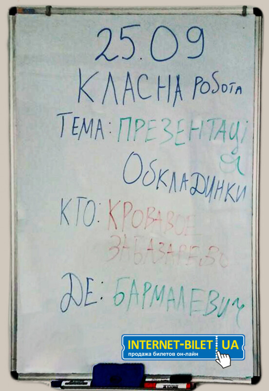 Первое, что делает группа, когда записывает альбом - это песни, но в случае с Евгением Константинычем, всё идёт лёгким подъем-переворотом. Презентовав логотип, следующим шагом будет презентация обложки из уже всем известного и нашумевшего альбома "нет времени на ..йню, а я нашёл". Да, именно 25 сентября в элитарном клубе art club Malevich, гурт Кровавое Забазарево вновь порадует своих поклонников нетленками, золотыми бенгерами, ворованными песнями и представит несколько новых песен. Начало в 19:00 по Гринвичу. При себе не иметь ничего, кроме билета. Совесть чиста, когда ты жив.