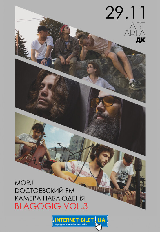 Продолжаем серию благотворительных концертов под названием BLAGOGIG в поддержку Алёны Воробьёвой! В этот раз на нашей сцене будет людно: Dостоевсkий FM, Камера Наблюденія и MORJ.