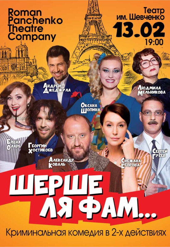 В спектакле "Шерше ля фам "занята прекрасная команда из любимых многими артистов: