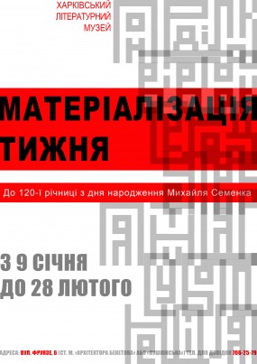 До 120-ї річниці з дня народження Михайля Семенка відбудеться перетворення найвідомішого, перекладеного на всі мови світу віршу українського футуриста в реальні арт-обєкти. Автор трансформерів – художник Юлія Кузьменко.