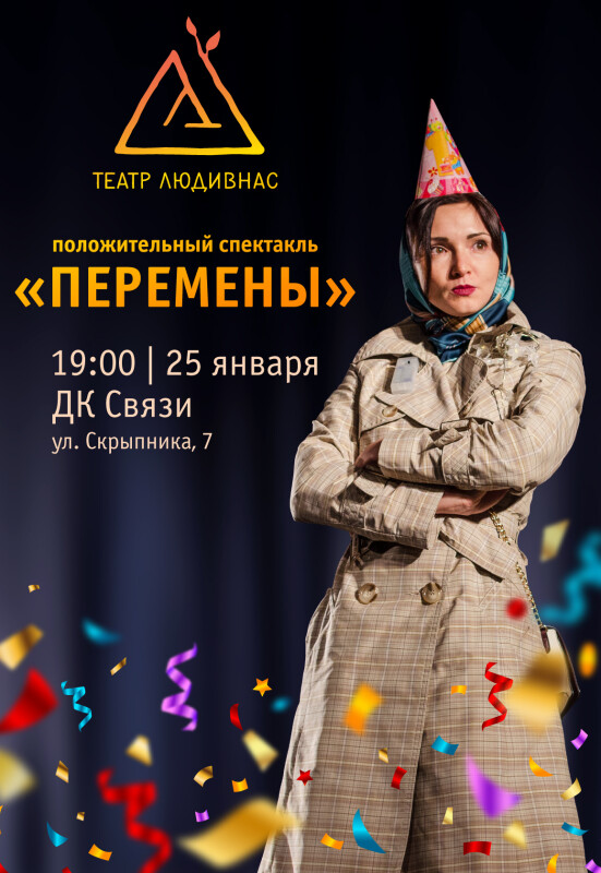 25 января в 19:00 играем авторский положительный спектакль "Перемены".