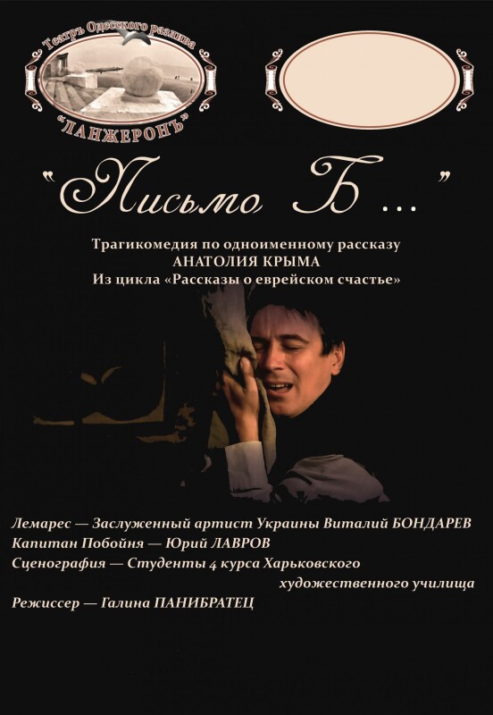 Премьера состоялась в 2015 г. Этот спектакль увидели зрители на сценических площадках в г.Ганновер (Германия), г.Кишинев(Молдова), г.Херсон (Украина),г.Ювяскюля (Финляндия), г.Поти (Грузия) а так же в Одессе и в Харькове (Украина). На Международном фестивале «Мельпомена Таврии» спектакль «Письмо Богу» признан экспертным советом как - «Лучший спектакль камерной сцены» (Украина,г.Херсон,2017г.) . А совсем недавно в июле этого года в Грузии в г.Поти на Международном театральном фестивале эксперты и критики отметили по достоинству этот спектакль и мы получили звание «Лауреат фестиваля»