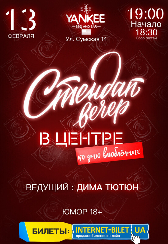 Харьков, уже 13 февраля приглашаем тебя на "Стендап вечер в центре: ко дню влюбленных"!