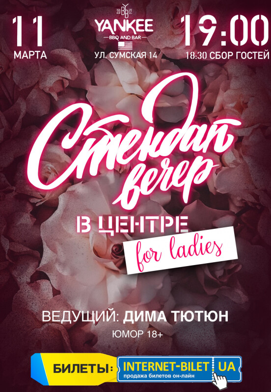 Ведущий вечера: Дима Тютюн - амбассадор шуток про девушек и отношения.