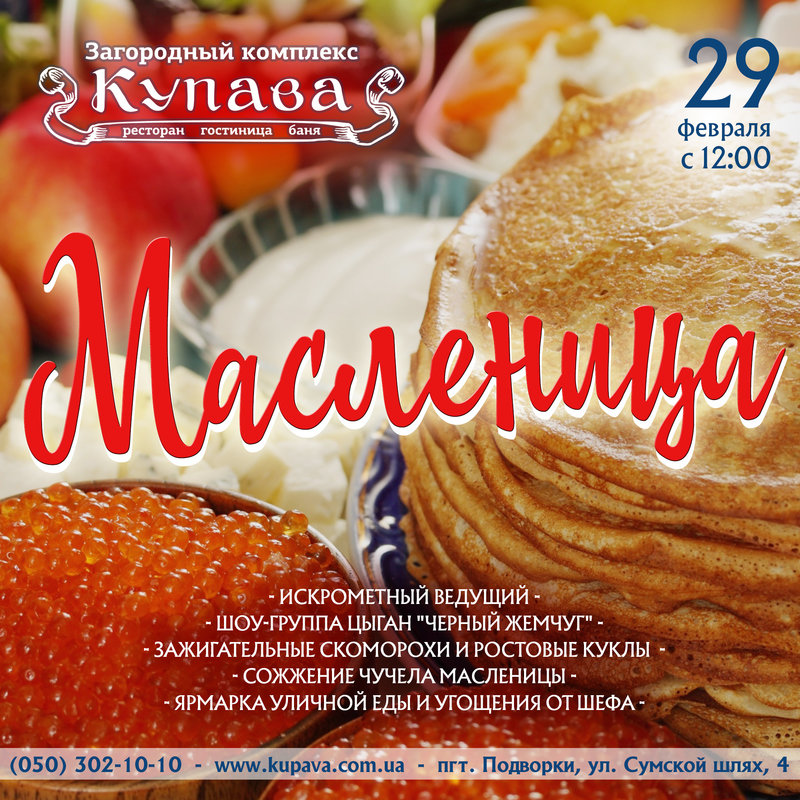 29 февраля (в субботу) в "Купаве" традиционно проходит веселый праздник "Масленица"