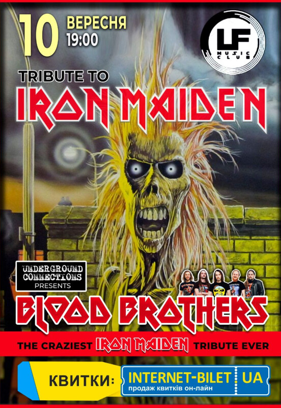 Кто такие Blood Brothers? Это единственная на постсоветском пространстве официальный Iron Maiden трибьют группа! Несмотря на свой относительно молодой возраст, Blood Brothers уже успели себя зарекомендовать, как один из самых крутых и профессиональных трибьютов в Европе. За 6 лет существования ребята успели выступить практически в каждом уголке нашей страны! Прогремели на самых мощных фестивалях Украины. Именно Blood Brothers были приглашены на разогрев ex-вокалистов Iron Maiden Блейза Бейли и Пола Диана во Дворец спорта. Которые в свою очередь выделили безупречное выполнение и шоу, которое воспроизводит группу. В последнее время Blood Brothers пользуются большим спросом в странах ЕС, где ребята регулярно проводят гастроли.
