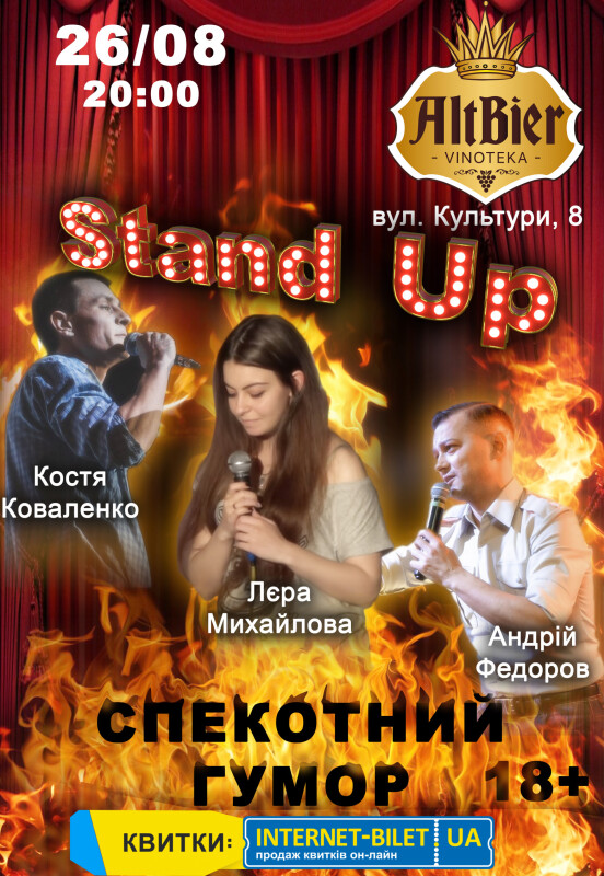 Что может быть жарче жаркого лета? Только жаркий юмор от резидентов харьковских Stand Up клубов, которые решили объединить свои творческие усилия и сделать и без того жаркие летние дни более горячими в плане юмора. И все это в уютном зале Vinoteka Alt Bier.