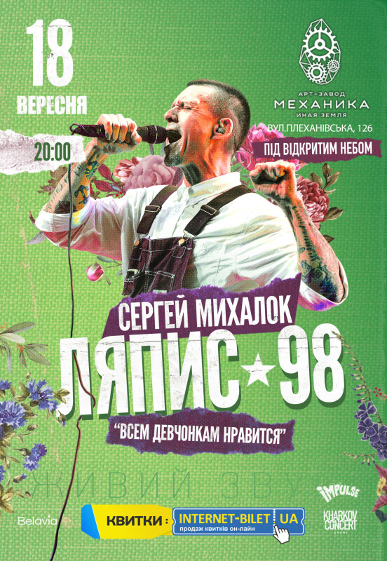18 сентября в Харькове оркестр «ЛЯПИС 98» и его бессменный лидер Сергей Михалок представят эксклюзивное и бескомпромиссное по своим масштабам шоу «Всем девчонкам нравится», состоящее только из золотых хитов и всенародно любимых песен, которые поют все вот уже несколько поколений!