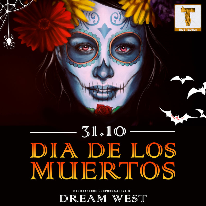 Оригинальная ночь мертвых в мексиканском стиле: черепа, скелеты, воздушные шары, уникальная фотозона, призы, фирменные подарки, литры чарующего бесплатного зелья от спонсора вечера - True Tequilla Gold.