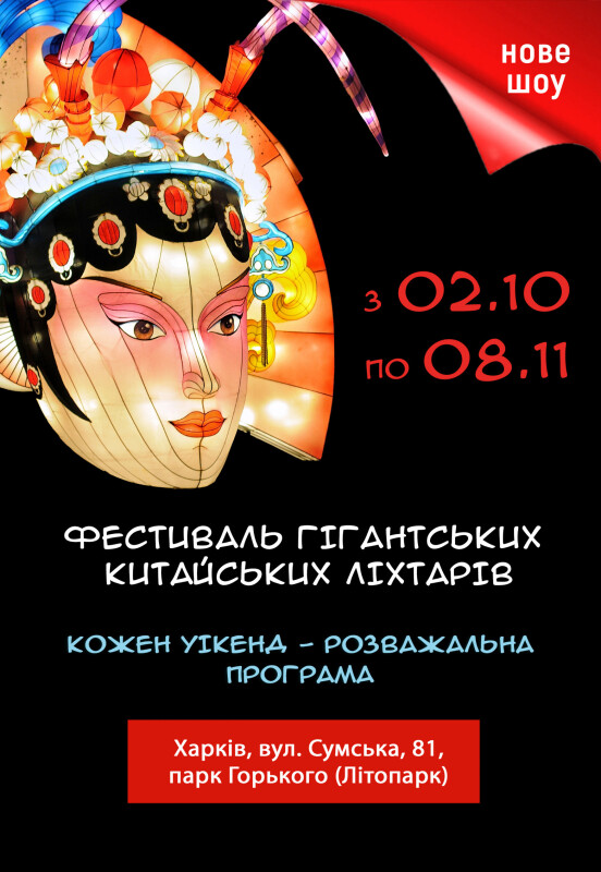 Этой осенью харьковский Летопарк превратится в настоящий городок огня и света! Со 2 октября здесь стартует всемирно известный «Фестиваль гигантских китайских фонарей», который за несколько лет успел покорить сердца миллионов украинцев. Гости и жители города смогут увидеть гигантские иллюминационные фигуры, которые окунут посетителей в таинственный мир сказок и легенд Поднебесной.